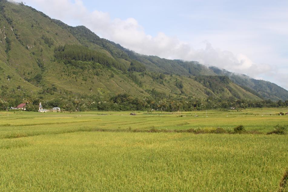 As I found myself riding a motorcycle to visit some historic places on Samosir Island, I constantly had to make some stops just to take some photographs of the majestic landscape laid before my eyes. Rolling clouds over towering hills, green and yellow rice fields, a waterfall, colorful churches and tombs, and of course, the view of Lake Toba are some of the most alluring things that I witnessed during my exploration of the island on a motorbike.