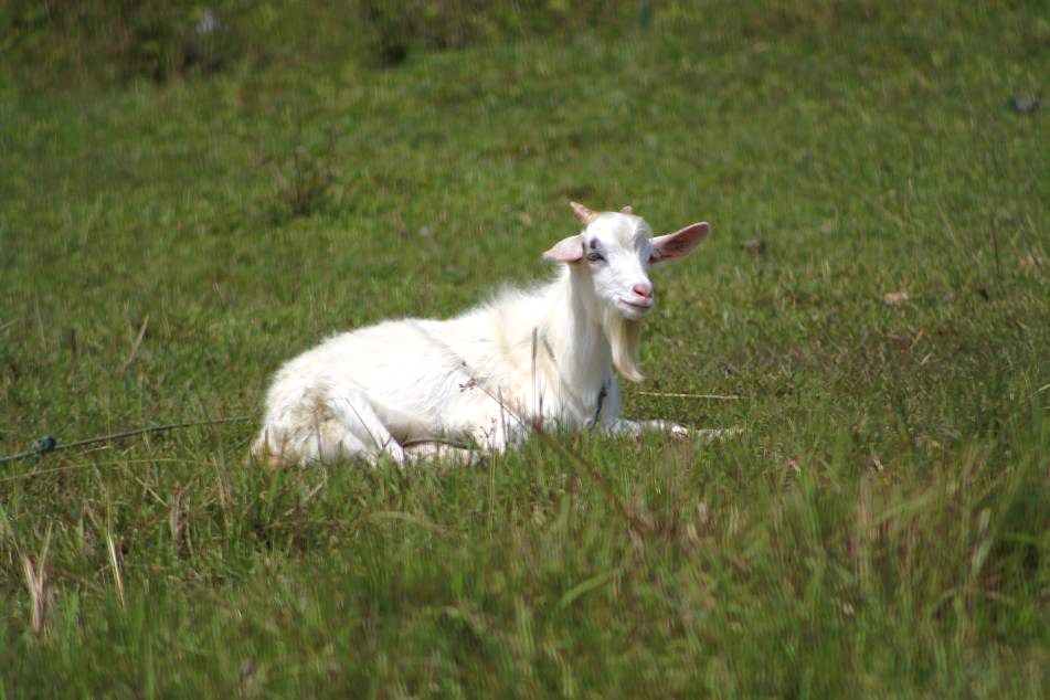 A White Goat Enjoying His Time