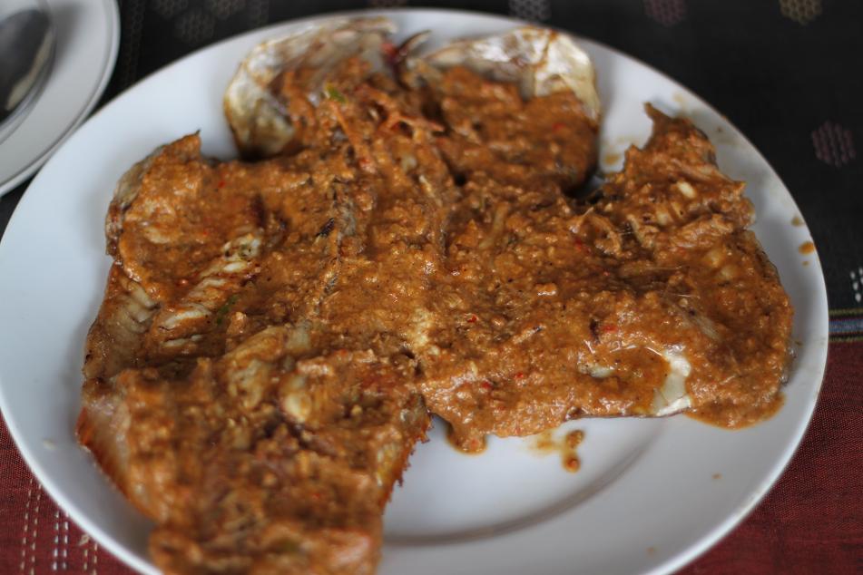 The cultural shock only struck once, apparently, since we didn’t encounter any problem at all when having lunch at a restaurant which is recommended by Lonely Planet. I had a rather pricey but delicious barbecued local freshwater fish called Tombur. The fish was huge and the barbecue sauce was scrumptious. To balance the intense flavor of the barbecued fish, I had a very refreshing juice of terong belanda (Cyphomandra betacea or tamarillo) for drink. All in all, it was such a delightful lunch after wandering around the island and some ancient cultural sites on a motorbike.