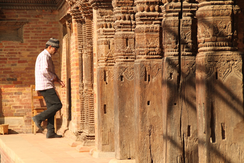 Walking through Ancient Wooden Pillars