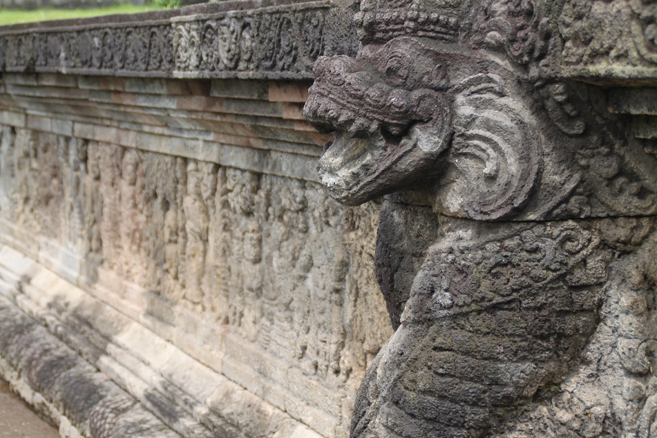 Such stunning bas reliefs! And so well captured. Are those fierce winged snake hoods water spouts? Thank you for sharing another Indonesian gem, Bama. Hadn’t heard of this gorgeous temple before.
