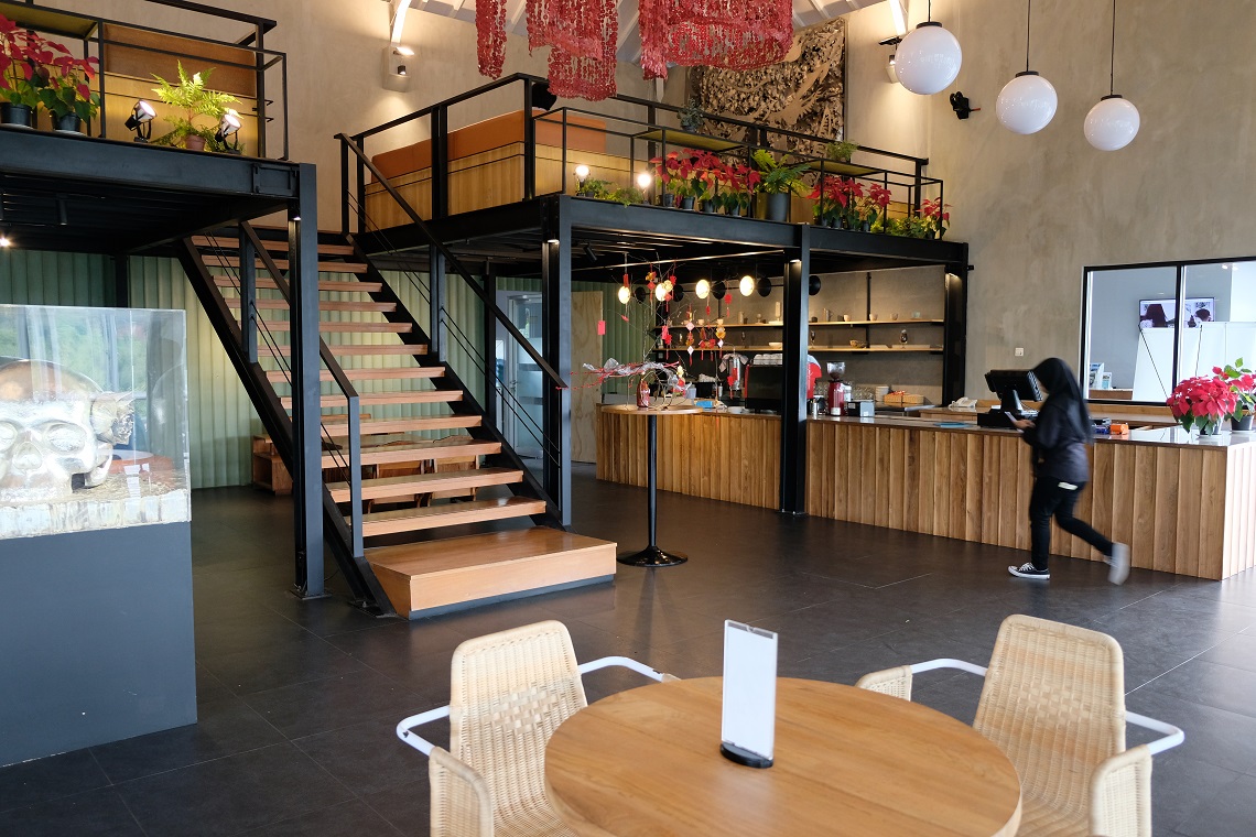 Also located on the northern outskirts of Bandung, a peaceful and verdant area perfect for contemplating and seeking inspiration, is Lawangwangi Creative Space. The brainchild of Andonowati, an associate professor at ITB’s Faculty of Mathematics and Natural Sciences who also has a big interest in art, the facility was created to promote Indonesian artists to a broader audience while developing their unique, intrinsic qualities. Unfortunately, at the time of our visit the main gallery was off-limits since preparation was underway for an upcoming art exhibition, forcing us to head directly upstairs where a cozy restaurant enjoyed a sweeping view of the nearby hills and Bandung itself.