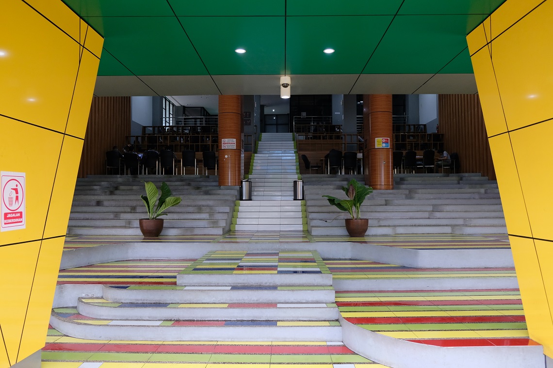While independent art galleries have been springing up all over Bandung, the municipal government also took an interest in art development by building a one-stop center for creativity incubation and exhibitions in the eastern part of the city. Dubbed Bandung Creative Hub (BCH), the uniquely-shaped building is equipped with a coworking space, a library, an auditorium, an exhibition space, and classrooms for photography and animation, among other things. Its corridors are adorned with colorful characters from Sundanese mythology, as well as more modern creations. However, from my observation this state-of-the-art facility seemed to be underused and later, after the trip, I learned about deeper problems involving the management of BCH.