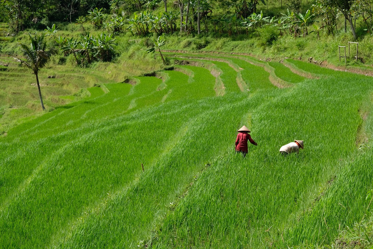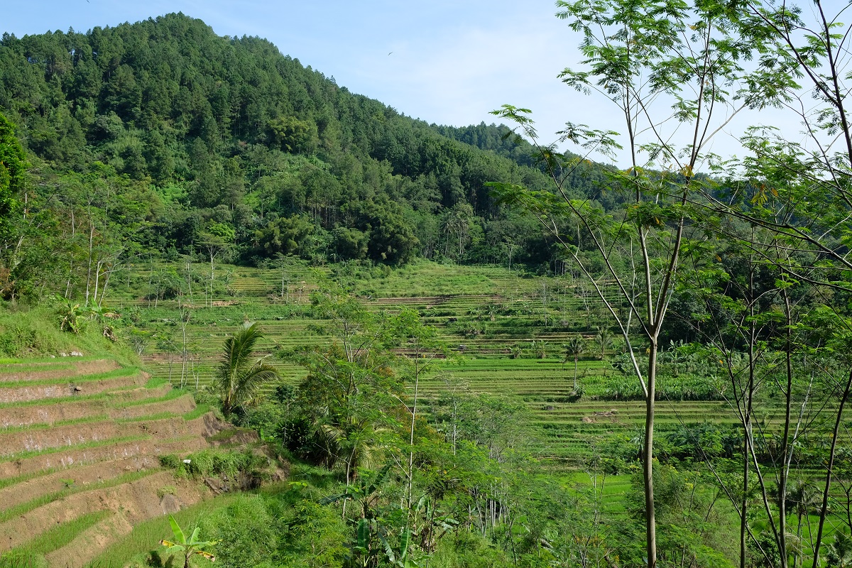 The answer to the same question that repeated in my head every few minutes or so was a resounding no. Candi Selogriyo, it seemed, was hidden from plain sight behind tall trees. Somewhere in the middle of the path, two pavilions jutted out from one side of the mountain slope, providing visitors with better viewpoints of the magnificent rice terraces across the ravine. I’ve read about this beautiful hike before, but I didn’t expect to see such terrific scenery. This location is a good example of how Java’s active volcanoes have rendered this land fertile where almost everything can grow abundantly. And speaking of volcanoes, the barren peak of Mount Sumbing was clearly visible from one of the viewpoints along the hike.