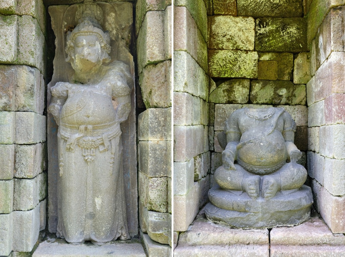 Standing at an elevation of 740 meters above sea level, Candi Selogriyo’s origin is somewhat shrouded in mystery. No inscription mentioning this site has been discovered, leaving experts only with questions. However, based on its architectural style and location, a widely accepted consensus suggests that the Hindu temple might have been built around the eighth or ninth century CE. If there is no written documentation about it, then how could we know that this candi was Hindu? All you need to do is walk around the structure to see the statues in the temple’s niches. While most of them have lost their heads, their discernible figures are enough to point to the candi’s Hindu origin with absolute certainty.