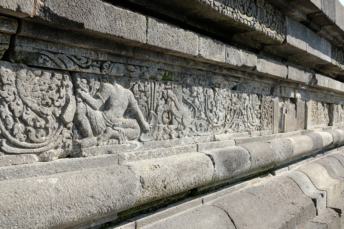 While from afar Candi Sojiwan’s rooftop stupas are undoubtedly eye-catching, ancient architecture enthusiasts are particularly drawn to the relief panels adorning the temple’s base. Inspired by the Jataka tales – a collection of stories about the previous lives and rebirths of Gautama Buddha – these ancient works of art, or at least most of them, fortunately survived the elements, the natural disasters, and the social upheavals on Java over the course of centuries. I had almost zero knowledge about these stories, which was why upon my visit I made sure to take clear shots of most of the panels so when I got home I could match these with reliable online sources.